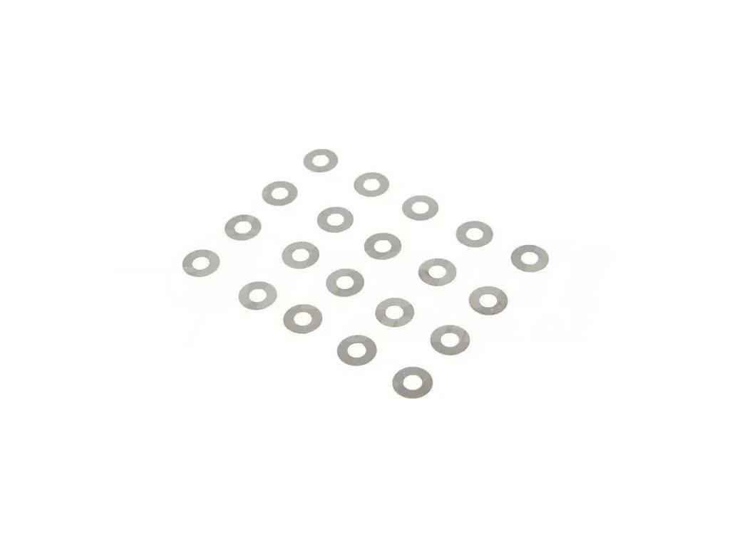 Sada 20ks vymezovacích podložek o síle 0,1mm, pro podložkování ozubených kol mechaboxu elektrické airsoftové zbraně.
